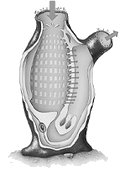 Le squelette colonial est constitué par l’apposition de ces multiples chambres chitineuses (structure souple) ou calcaires (structure rigide) qui répartissent et séparent les zoïdes.